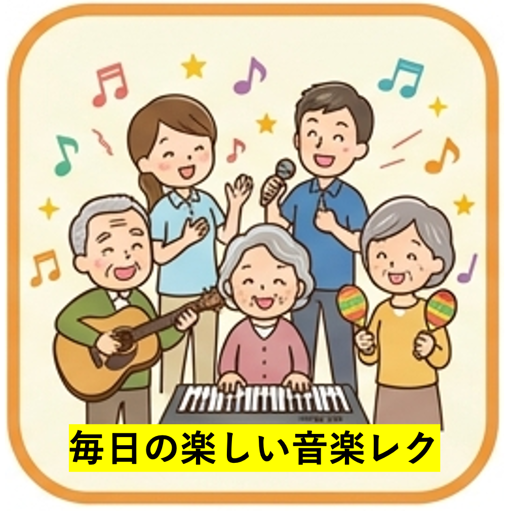 「毎日の音楽レク」では、懐かしい歌を一緒に口ずさみ、心も体もリフレッシュ!音楽の力で笑顔が広がります。